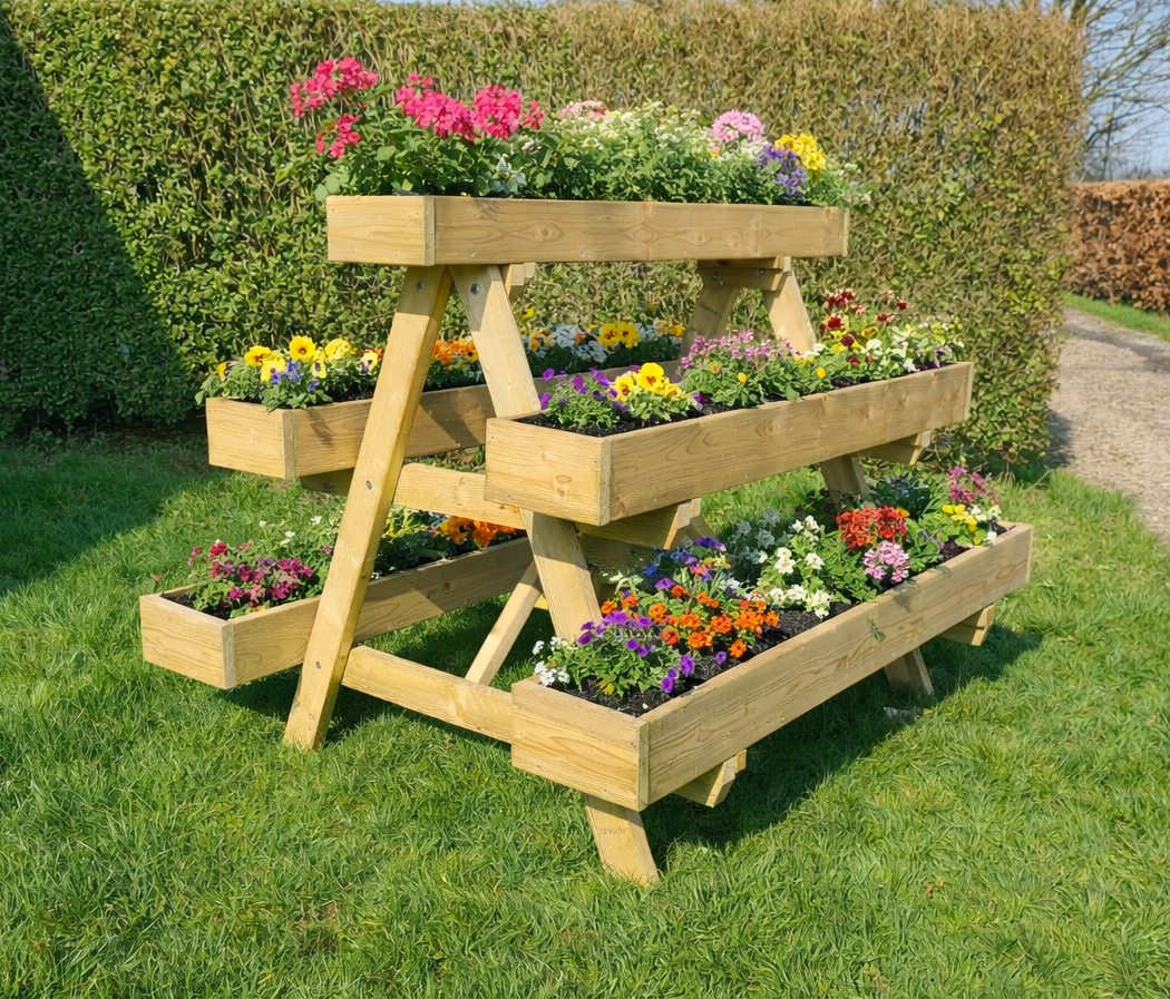 De vijf afzonderlijke teelbakken bieden voldoende ruimte om verschillende planten, kruiden of bloemen te kweken. Zo kun je bijvoorbeeld basilicum, munt, aardbeien of sla overzichtelijk naast elkaar laten groeien. De verhoogde standaard zorgt voor een comfortabele werkhoogte, waardoor planten verzorgen, water geven en oogsten een stuk makkelijker wordt.