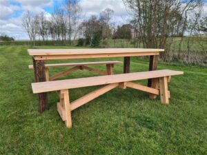 Stel je voor dat je met een frisse drank in de hand geniet van een zwoele zomeravond, terwijl de sterren aan de hemel verschijnen en de geur van bloeiende planten je omringt. Onze Douglas tuintafels zijn niet alleen een prachtige aanvulling op je buitenruimte, maar ze creëren ook de perfecte setting voor intieme diners, lange gesprekken en onvergetelijke momenten. Elk stuk is met zorg en vakmanschap vervaardigd, zodat je gemoedsrust hebt terwijl je samen met geliefden de wonderen van het buitenleven deelt. Dankzij de natuurlijke uitstraling van het Douglas hout en de mogelijkheden voor persoonlijke afwerking, kun je een unieke sfeer creëren die helemaal bij jou past. Maak van je tuin een plek waar herinneringen worden gemaakt, en waar elke maaltijd een viering van het leven is.